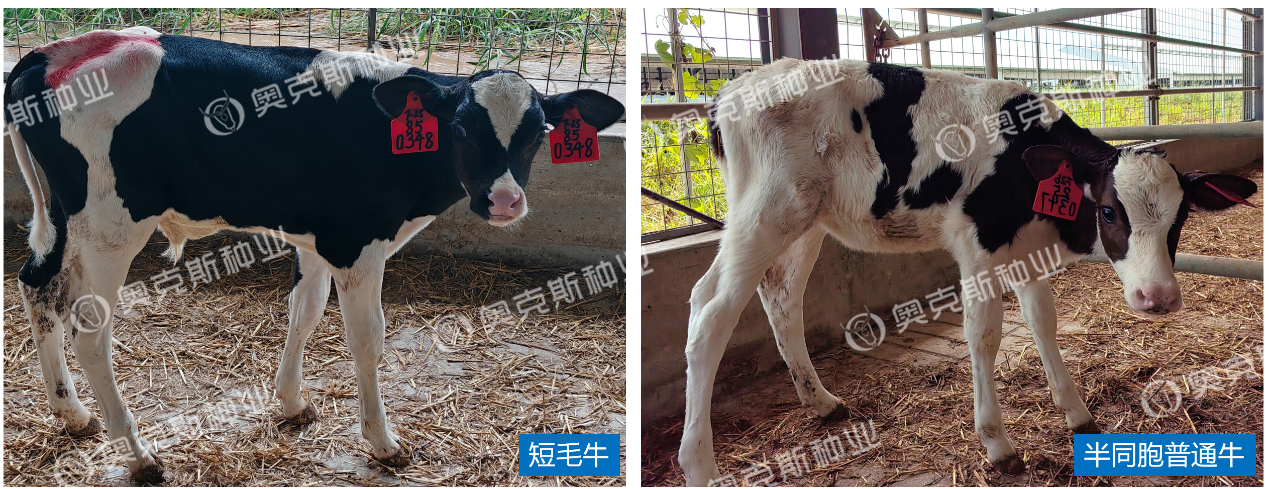 奥克斯公司培育的耐热短毛牛和普通牛对比